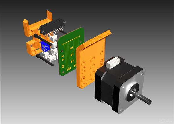 使用长螺钉和垫片将 PCB 连接到挤出机步进器的背面,使用 20 针 molex microfit 和 XH2.4 连接器。