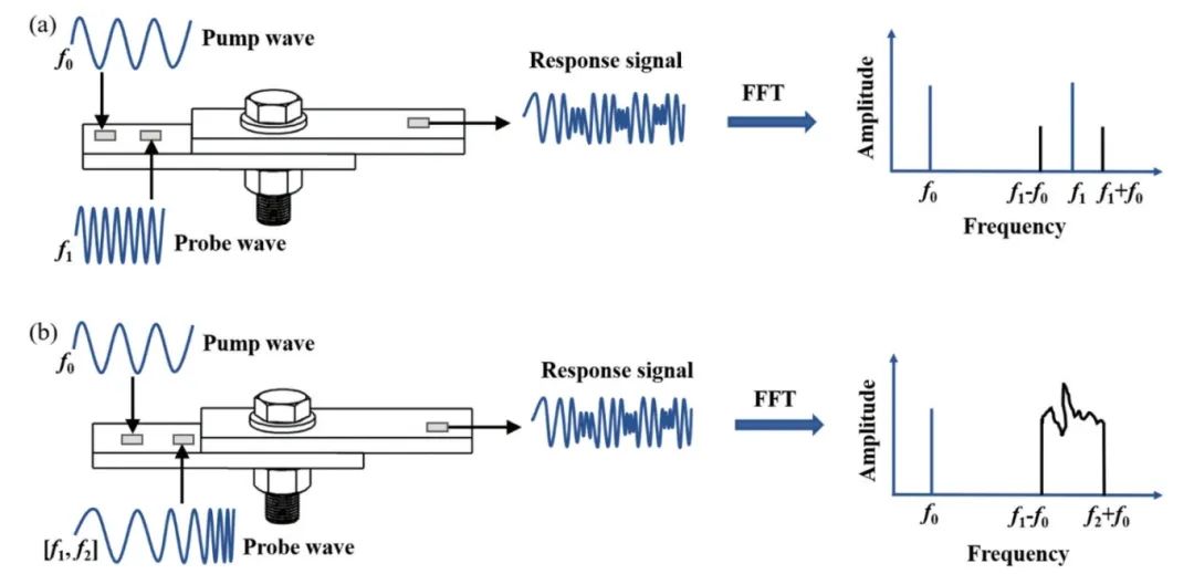 实验名称:ATA-2022B高压放大器在螺栓松动检测中的应用实验方向:超声检测实验设备:ATA-2022B高压放大器、函数信号发生器,压电陶瓷片,数据采集卡,示波器,PC等实验内容:本研究基于振动声调制的螺栓松动检测方法,其中低频泵浦波采用单频信号,而高频探测波采用扫频信号,利用泵浦波和探测波在接触面的振动声调制响应对螺栓的松动程度进行检测。通过螺栓松动检测